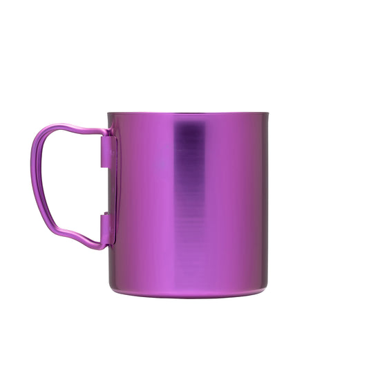 Die traditionsreiche Campingtasse mit brillanter Eloxalfarbe: Dieser doppelwandige, isolierte **titanium**-Becher hält Ihren Kaffee oder Tee warm, wenn Sie ihn brauchen. Gebaut, um jedem Abenteuer standzuhalten, ohne Ihr Gepäck zu beschweren. Klappbare Griffe sorgen dafür, dass dieser Becher im Stauraum minimal Platz einnimmt.