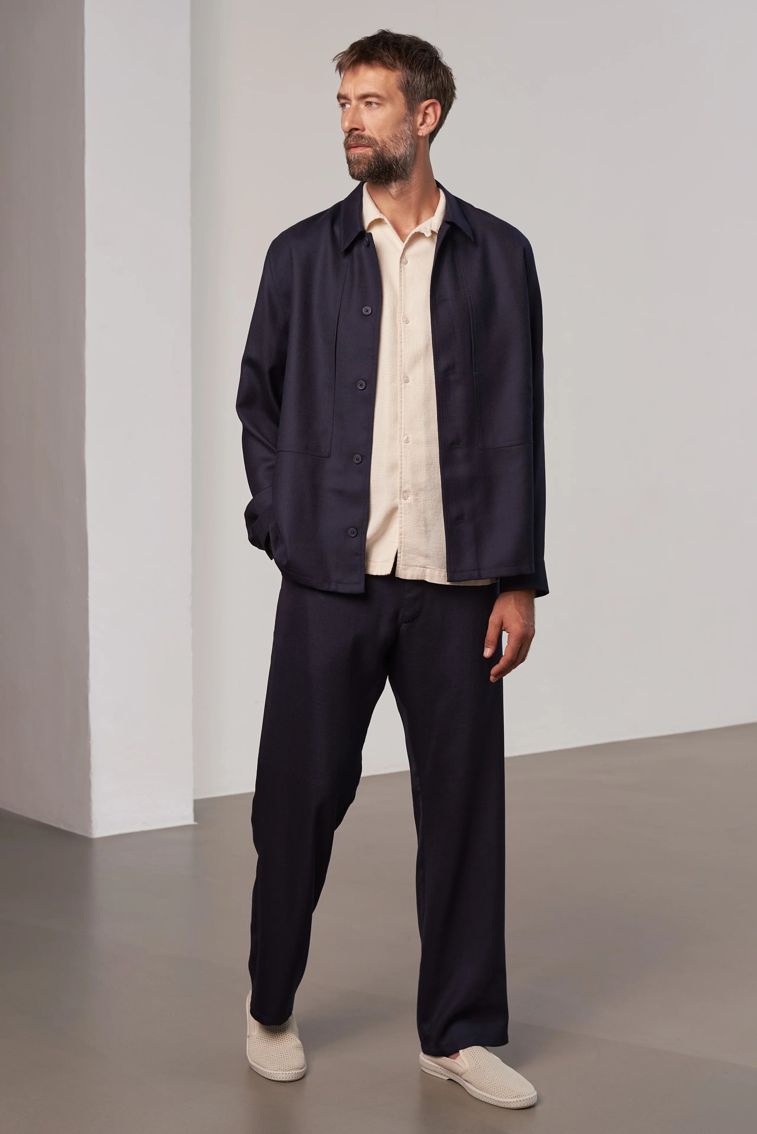 Gerda ist ein einfarbiger Wollpullover mit Drop-Schultern, einem Rundhalsausschnitt, breiten Rippstrickabschlüssen an Hals, Ärmeln und Saum sowie einer schönen Rippstrickstruktur als Detail.